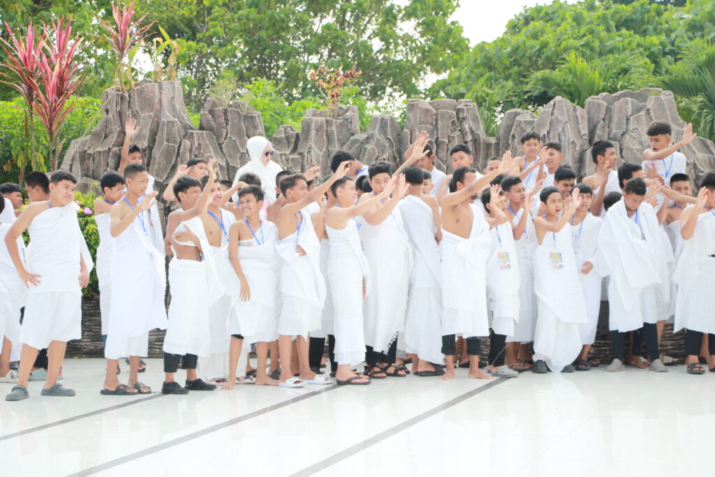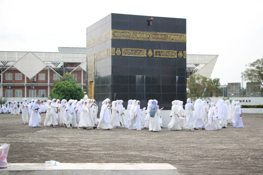 Kegiatan ini juga melibatkan para guru dan tenaga pendidik sebagai pembimbing, sehingga proses pelaksanaan manasik berjalan tertib dan terarah. Dengan mengenakan pakaian ihram, para siswa tampak serius namun tetap ceria mengikuti setiap tahapan manasik yang telah disimulasikan.